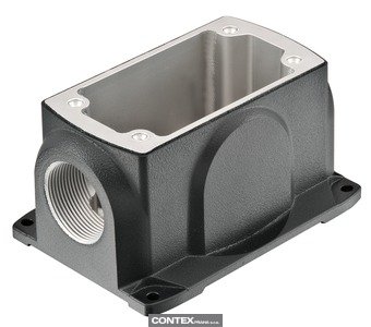 Surface mounted housing, Size: Han-Yellock 60, Screw locking, Side entry, 1x M25, Material (hood/housing): Zinc die-cast, Powder-coated, RAL 7021 (black grey), Material (seal): NBR