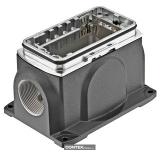 Surface mounted housing, incl. bulkhead mounted housings, Size: Han-Yellock 60, Screw locking, Side entry, 1x M25, Material (hood/housing): Aluminium die-cast, Powder-coated, RAL 7021 (black grey), Material (seal): NBR
