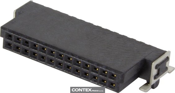 Female connector, Reflow soldering termination (SMT), Contacts: 64, Angled, Copper alloy, Noble metal over Ni Mating side, Sn over Ni Termination side Více