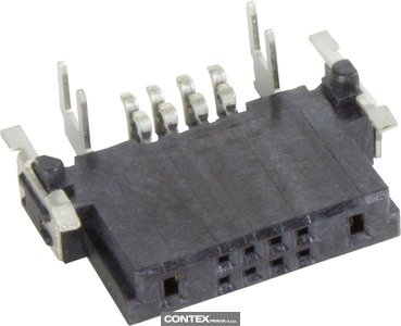 Female connector, Reflow soldering termination (SMT), Rated current: 21.5 A, Contacts: 10, Angled, Copper alloy, Noble metal over Ni Mating side, Sn over Ni Termination side, Performance level: 1, Liquid crystal polymer (LCP), Black