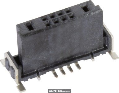 Female connector, Reflow soldering termination (SMT), Rated current: 20 A, Contacts: 10, Straight, Copper alloy, Noble metal over Ni Mating side, Sn over Ni Termination side, Performance level: 1, Liquid crystal polymer (LCP), Black