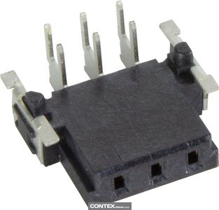 Female connector, Reflow soldering termination (THR), Rated current: 22 A, Contacts: 3, Angled, Copper alloy, Noble metal over Ni Mating side, Sn over Ni Termination side, Performance level: 1, Liquid crystal polymer (LCP), Black