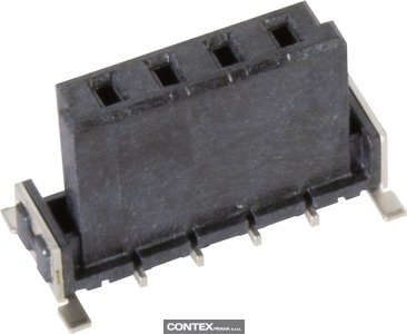 Female connector, Reflow soldering termination (SMT), Rated current: 20 A, Contacts: 4, Straight, Copper alloy, Noble metal over Ni Mating side, Sn over Ni Termination side, Performance level: 1, Liquid crystal polymer (LCP), Black