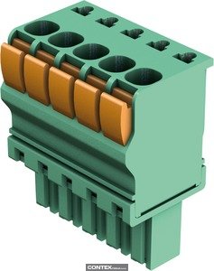 Connector, Horizontal, Push-in-spring-cage termination, Rated current: 11 A, Contacts: 8, Copper alloy, Sn Mating side, Coding: Please order coding pins separately., Polyamide (PA), Polyphthalamide (PPA), Green
