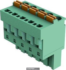 Connector, Horizontal, Push-in-spring-cage termination, Rated current: 12 A, Contacts: 14, Copper alloy, Sn Mating side, Coding: Please order coding pins separately., Polyamide (PA), Polyphthalamide (PPA), Green