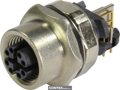 PCB adapter, Angled, incl. housing, for front mounting, Reflow soldering termination (THR), Rated current: 0.5 A, Contacts: 8, Copper alloy, Au over Ni Mating side, Coding: X-coding, Liquid crystal polymer (LCP)
