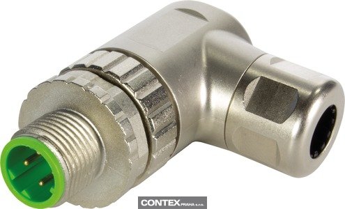 Cable connector, Angled, Male, D-coding, Screw termination, Polyamide (PA), Contacts: 4, Brass Au over Ni Mating side Více