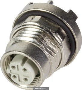 PCB adapter, Straight, for rear mounting, Reflow soldering termination (THR), Rated current: 4 A, Contacts: 4, Copper alloy, Au over Ni Mating side, Coding: D-coding, Polyamide (PA)