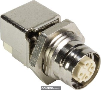 PCB adapter, Angled, for rear mounting, Reflow soldering termination (THR), Rated current: 4 A, Contacts: 4, Copper alloy, Au over Ni Mating side, Coding: D-coding, Liquid crystal polymer (LCP)