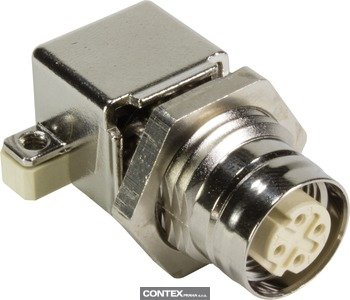 PCB adapter, Angled, for rear mounting, Reflow soldering termination (THR), Rated current: 4 A, Contacts: 4, Copper alloy, Au over Ni Mating side, Coding: D-coding, Liquid crystal polymer (LCP)