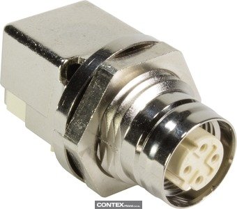 PCB adapter, Angled, for rear mounting, Reflow soldering termination (THR), Rated current: 4 A, Contacts: 4, Copper alloy, Au over Ni Mating side, Coding: D-coding, Liquid crystal polymer (LCP)