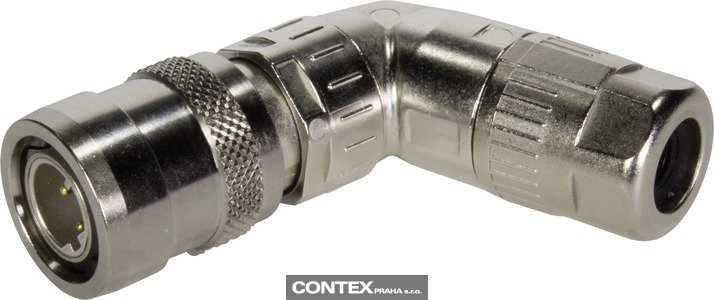 Cable connector, Angled, Male, X-coding, Crimp termination, Liquid crystal polymer (LCP), Contacts: 8, Conductor cross-section: 0.08...0.25 mm², Rated current: 0.5 A, Zinc die-cast, Outer PushPull, Degree of protection: IP65 / IP67 mated condition