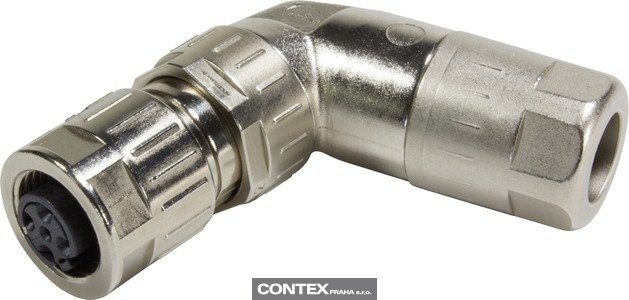 Cable connector, Angled, Female, D-coding, Crimp termination, Liquid crystal polymer (LCP), Contacts: 4, Conductor cross-section: 0.13...0.82 mm² Více