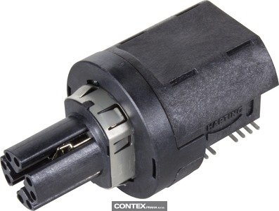 PCB adapter, with integrated transformer, Angled, Reflow soldering termination (SMT), Rated current: 0.8 A, Contacts: 8, Brass, Au over Ni Mating side, Coding: X-coding, Liquid crystal polymer (LCP), Black