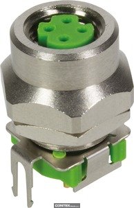 PCB connector, Straight, for front mounting, Wave soldering termination, Rated current: 4 A, Contacts: 4, Copper alloy, Au over Ni Mating side, Coding: D-coding