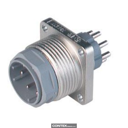 NR Circular Connector, M26 x 1.5 thread, Field Attachable, Male, Surface Mount with Flange, 6+PE pins, Metal housing, 250 V, 10 A