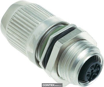 Cable connector, Panel feed through, for rear mounting, Female, B-coding, Crimp termination, Polyamide (PA), Contacts: 5, Conductor cross-section: 0.14...0.75 mm², Rated current: 4 A, Zinc die-cast, Screw locking, Degree of protection: IP65 / IP67 mated condition