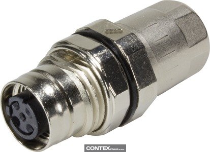 Cable connector, Panel feed through, for rear mounting, Female, D-coding, Crimp termination, Liquid crystal polymer (LCP), Contacts: 4 Více