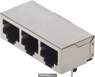 Female, RJ45, Angled, 3 ports, Wave soldering termination, Rated current: 1.5 A, Contacts: 8
