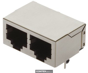 Female, RJ45, Angled, 2 ports, Wave soldering termination, Rated current: 1.5 A, Contacts: 8