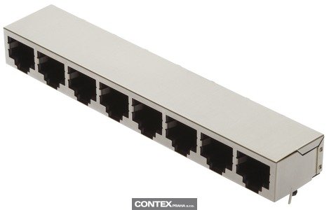 Female, RJ45, Angled, 8 ports, Wave soldering termination, Rated current: 1.5 A, Contacts: 8 Více