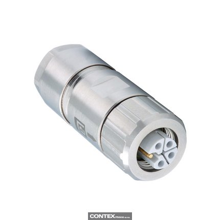 M12 Power Field Attachable Connector: Female, straight, 5-pin(4+FE), L-coded, shielded, silver housing, crimp type, 50 V AC/60 V DC