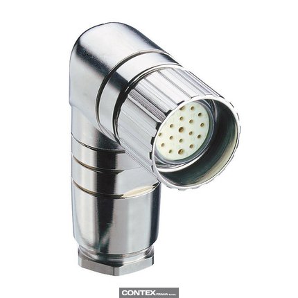 M23 Power Field Attachable Connector: Female, angled, 19-pin, silver housing, 50 V AC / 60 V DC