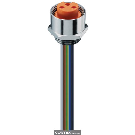 7/8" Power Receptacle Connector: Female, front mount, 3-pin(2+PE), silver housing, 230 V AC/DC, 12 A, 0.75 mm²