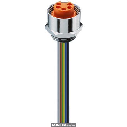 7/8" Power Receptacle Connector: Female, front mount, 5-pin(4+PE), silver housing, 230 V AC/DC, 9 A, 0.50 mm²