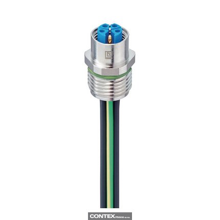 M12 Power Receptacle Connector: Female, front mount, 5-pin(4+PE), K-coded, shielded, silver housing, 600 V AC/DC, 16 A
