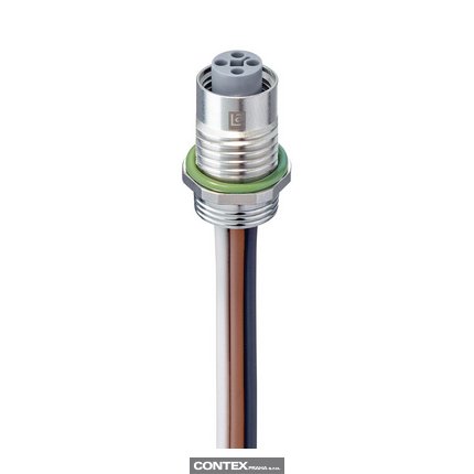M12 Power Receptacle Connector: Female, rear mount, 4-pin, T-coded, silver housing, 50 V AC / 60 V DC, 16 A
