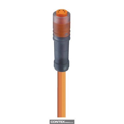 M8 Snap-In Sensor/Actuator Single-Ended Cordset: Female, straight, 4-pin, A-coded, translucent body, 30 V AC/DC, 4 A; PVC orange cable, 4-wires, 0.25 mm²