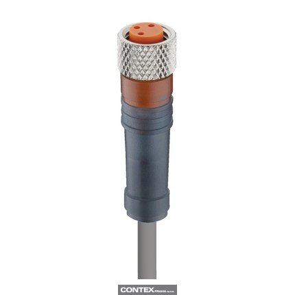 M8 Standard Sensor/Actuator Single-Ended Cordset: Female, straight, 3-pin, A-coded, translucent body, 50 V AC / 60 V DC, 4 A; PUR grey cable, 3-wires, 0.34 mm²