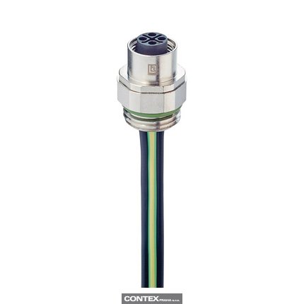 M12 Power Receptacle Connector: Female, front mount (positionable), 4-pin(3+PE), S-coded, shielded, silver housing, 600 V AC/DC, 16 A