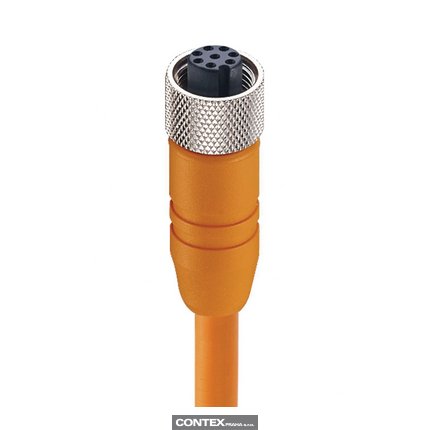 M12 Standard Sensor/Actuator Single-Ended Cordset: Female, straight, 8-pin, A-coded, shielded, orange body, 30 V AC/DC, 2 A; PVC orange cable, 8-wires, 0.25 mm²