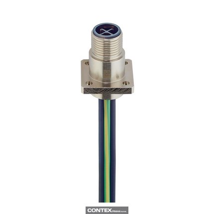 M12 Power Receptacle Connector: Male, front mount with Flange, 4-pin(3+PE), S-coded, shielded, silver housing, 600 V AC/DC, 16 A