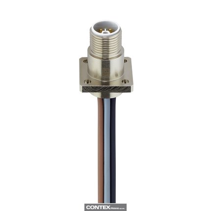M12 Power Receptacle Connector: Male, front mount with Flange, 5-pin(4+FE), L-coded, shielded, silver housing, 50 V AC / 60 V DC, 16 A