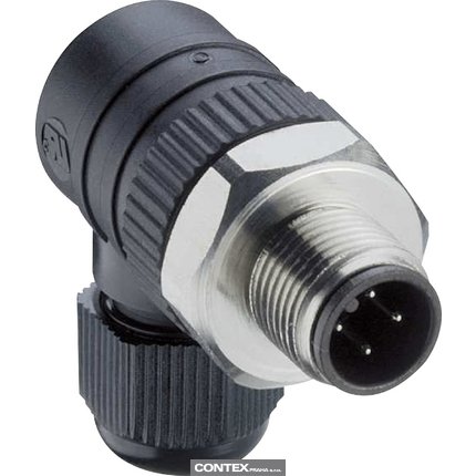 M12 Field Attachable Connector: male, angled, 4-pin, A-coded, unshielded, black housing, screw type, 230 V AC/DC Technical