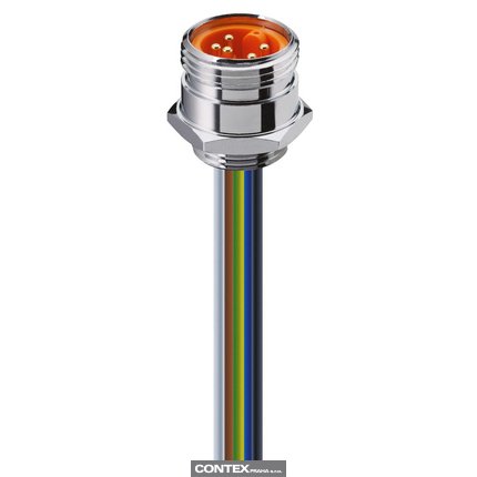 7/8" Power Receptacle Connector: Male, front mount, 5-pin(4+PE), silver housing, 230 V AC/DC, 9 A, 0.50 mm²
