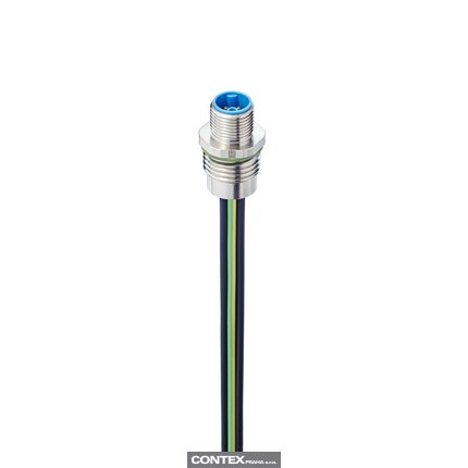 M12 Power Receptacle Connector: Male, front mount, 5-pin(4+PE), K-coded, shielded, silver housing, 600 V AC/DC, 16 A