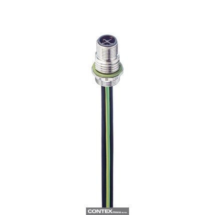 M12 Power Receptacle Connector: Male, rear mount, 4-pin(3+PE), S-coded, shielded, silver housing, 600 V AC/DC, 16 A