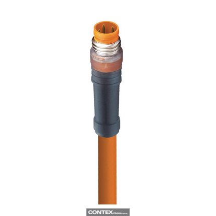 M8 Snap-In Sensor/Actuator Single-Ended Cordset: Male, straight, 3-pin, A-coded, translucent body, 50 V AC / 60 V DC, 4 A; PVC orange cable, 3-wires, 0.34 mm²