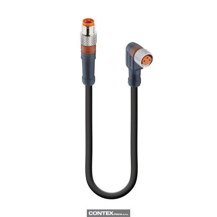 Sensor/Actuator Double-Ended Cordset: Male straight A-coded translucent 3-pin M8 Standard connector to female angled A-coded translucent 3-pin M8 Standard connector with 2xLEDs (PNP), 10-30 V DC, 4 A; PUR black cable, 3-wires, 0.34 mm²