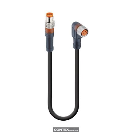 Sensor/Actuator Double-Ended Cordset: Male straight A-coded translucent 4-pin M8 Standard connector to female angled A-coded translucent 4-pin M8 Standard connector, 30 V AC/DC, 4 A; PUR black cable, 4-wires, 0.34 mm²