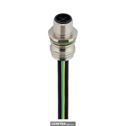 M12 Power Receptacle Connector: Male, front mount (positionable), 4-pin(3+PE), S-coded, shielded, silver housing, 600 V AC/DC, 16 A