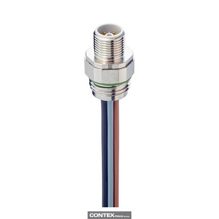 M12 Power Receptacle Connector: Male, front mount (positionable), 5-pin(4+FE), L-coded, shielded, silver housing, 50 V AC / 60 V DC, 16 A