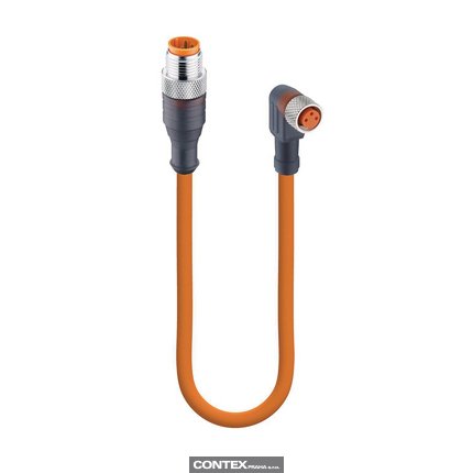 Sensor/Actuator Double-Ended Cordset: Male straight A-coded translucent 3-pin M12 Standard connector to female angled A-coded translucent 3-pin M8 Standard connector with 2xLEDs (PNP), 10-30 V DC, 4 A; PUR orange cable, 3-wires, 0.34 mm²
