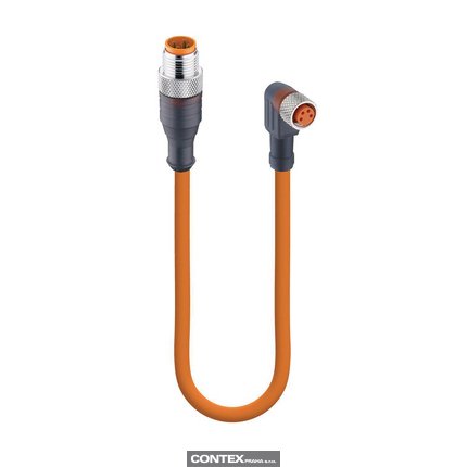 Sensor/Actuator Double-Ended Cordset: Male straight A-coded translucent 4-pin M12 Standard connector to female angled A-coded translucent 4-pin M8 Standard connector, 30 V AC/DC, 4 A; PUR orange cable, 4-wires, 0.34 mm²