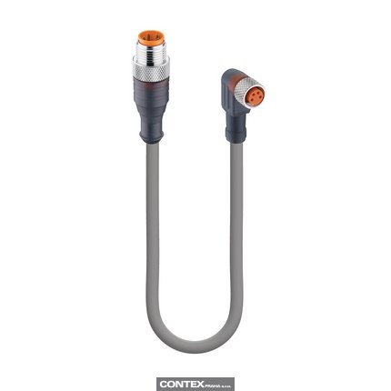 Sensor/Actuator Double-Ended Cordset: Male straight A-coded translucent 4-pin M12 Standard connector to female angled A-coded translucent 4-pin M8 Standard connector, 30 V AC/DC, 4 A; PUR grey cable, 4-wires, 0.34 mm²