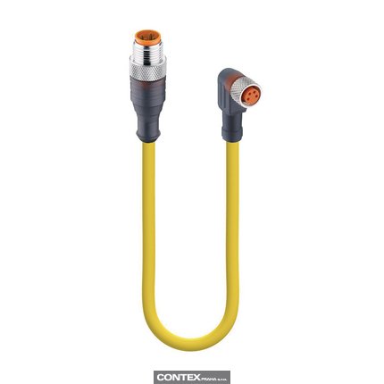 Sensor/Actuator Double-Ended Cordset: Male straight A-coded translucent 4-pin M12 Standard connector to female angled A-coded translucent 4-pin M8 Standard connector, 30 V AC/DC, 4 A; PUR yellow cable, 4-wires, 0.34 mm²